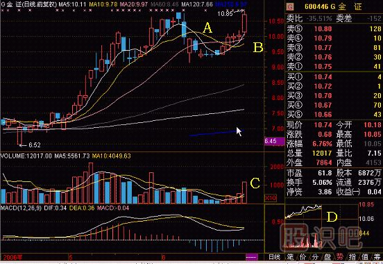壓瓦解圖283-1(圖283-1)G金證日K線圖上A處有個(gè)“壓”,“壓”對(duì)于股價(jià)繼續(xù)上升有壓力,怎樣才能瓦解這個(gè)&ld...