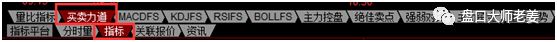 進入同花順軟件,在分時圖界面點擊「指標(biāo)」,選擇「買賣力道」。在「買賣力道」中,綠色線表示總賣量的變化趨勢,黃色線表示總買量的變化趨勢。