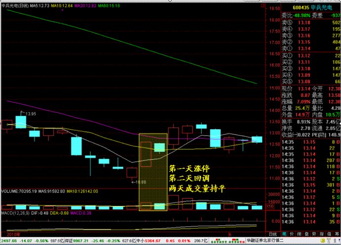 2.漲停當日和次日回調(diào)的量應(yīng)該基本持平。
