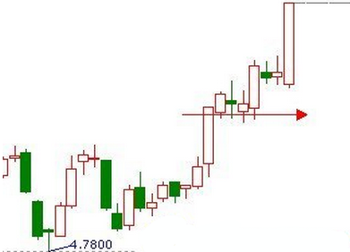 (一)大陽線收盤之上盤整。此種形態(tài)是單陽不破的最強勢手法。