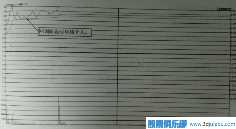 如圖2所示,在大龍地產(chǎn)(600159)分時圖中,該股股價在大幅高開之后急速拉升,但并沒有直接上封漲停,而是出現(xiàn)了小幅回調(diào)。這一回調(diào)為追漲的投資者提供了機會,投資者可在回調(diào)階段買人股票。結(jié)合消息面的政策利好,可以判斯出其股價在下一個交易日抓漲停股給妳聊區(qū)域規(guī)劃追漲停技術(shù)出現(xiàn)沖高走勢的概率較大。投資者可