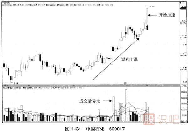 (1)圖1-31是中國(guó)石化(600017)2006年6月9日至2006年10月24日的日線圖。