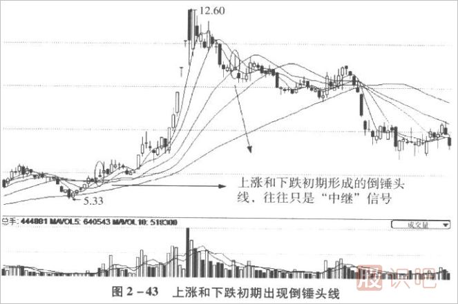4.倒錘頭線出現(xiàn)在上漲或下跌的初期,往往只是上漲或下跌中繼信號(hào)。
