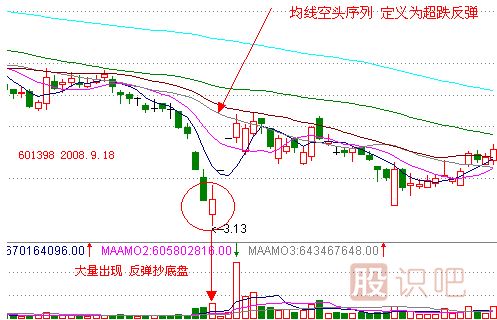 工商銀行(601398)2008年9月18日,拉出了大陽線,振幅達(dá)14%。匯金公司當(dāng)晚突然宣布增持,隨后股價(jià)連拉兩個(gè)漲停,短線漲幅30%以上。9月18日這個(gè)詭秘的大陽線回過頭來看,雖是先知先覺和獲知內(nèi)幕的主力涌進(jìn)的短線抄底盤,成交量大幅放大,出現(xiàn)奪命長陽時(shí)短線80%以上的概率會繼續(xù)大漲,但需要注意圖中30日生命線、60日決策線、120日趨勢線仍然大角度向下發(fā)散呈現(xiàn)空頭排列,這個(gè)底部只是短線底部,反彈早已注定了只是曇花一現(xiàn),大級別的歷史底部還沒到來。另外,還需要注意的就是當(dāng)日該股的分時(shí)圖,主力全天候都在搶籌,這也為后續(xù)幾日大漲,埋下了伏筆。