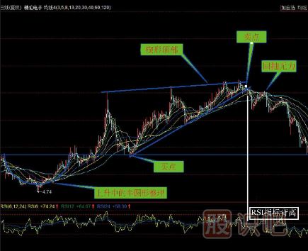 股票技術(shù)分析勢解說楔形頭部K線圖形態(tài)楔形頭部圖中股價在底部突破圓形底后大幅上升,但上升途中受到空方的壓制上行無力,回落到圓形底的頸線得到支撐后震蕩上行形成...