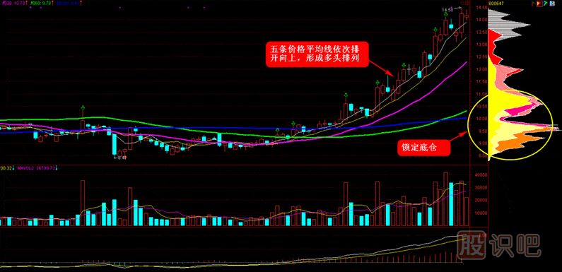 ①5日、10日、20日、60日、120日價(jià)格平均線依次多頭排列,即5日>10日>20日>60日>120日。