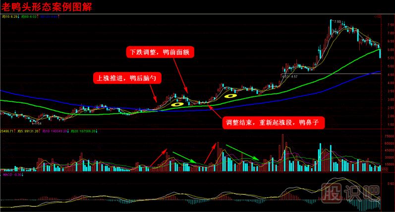 由上兩幅圖可知,老鴨頭形態(tài)的十大要點解析如下: