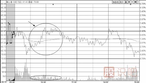股票技術(shù)分析基本知識(shí)告知妳分時(shí)圖-量?jī)r(jià)背離賣(mài)點(diǎn)