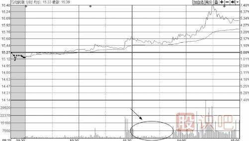 股票k線技術(shù)分析表述分時(shí)圖走勢(shì)中的放量回調(diào)賣(mài)出形態(tài)