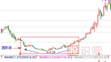圓形底K線形態(tài)名詞解釋:圓形底如上圖紅色矩形內(nèi)所示,所謂圓形底就是指底部是個(gè)圓弧形的,像個(gè)碗底一樣,我們可以清晰地看到,圓形底是有很多振幅...