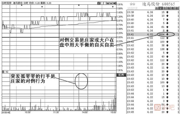 對倒交易是指主力或大戶因做盤需要在盤中用大單成交進行自買自賣。從本質(zhì)上說,對倒交易是一種典型的主力行為。如圖3-13所示:接下來由股識吧來跟妳議盤口語言解讀對倒交易與大單成交的比較,。