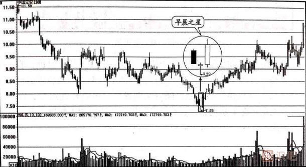 早晨之星是一種非常典型的股價見底信號,如果它出現(xiàn)在股價運行下跌趨勢的末期,或者出現(xiàn)在股價暴跌的極大跌幅處,那么它表明股價已經(jīng)見底或是離底部不遠,投資者應(yīng)及時分批適量入場進貨。
