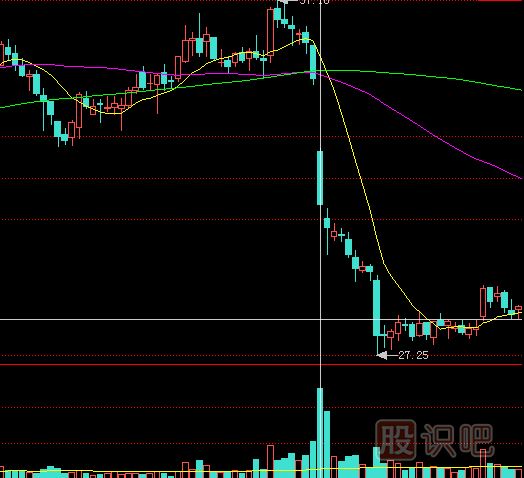 投資實例三:深深房A(0029)出現(xiàn)了“巨量陰線”,隨后股價一路下滑(見圖)。