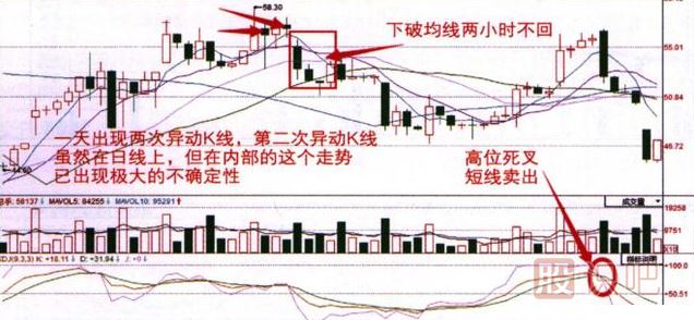 (6)5日、10日均線的方向死叉向下,此時(shí)如果60日均線也能方向向下,則助跌。