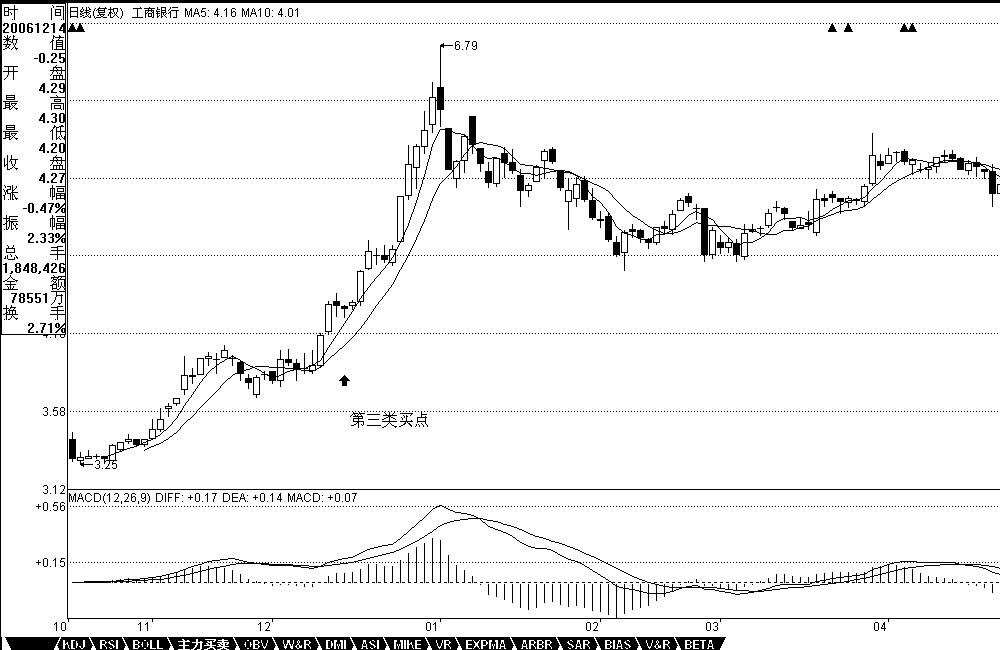 思考題二:工商銀行在12月22日構(gòu)成日線(xiàn)級(jí)別第三類(lèi)買(mǎi)點(diǎn)嗎?