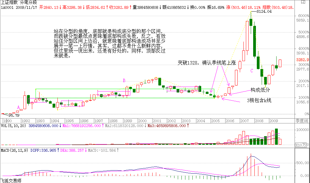 即2006年5月12日《G股是G點,大牛不用套纏論中樞公式給您議G股是G點大牛不用套!》纏股市開篇第一課之后,歷時半年纏于2006-06-07 18:08:15為什么開始寫教你炒股票1:《不會贏錢的經(jīng)濟人,只是廢人!》?請看纏的第十課后我的配圖就一切都明白了。整個108課,纏帶領(lǐng)著大家經(jīng)歷了一個完整的上漲啟動和下跌的結(jié)束,她在08年8月教你炒股票108:何謂底部?從月線看中期走勢演化(2008-08-29 09:15:01)一文中明確教大家在此處的分型的判斷中如何確立底部分型到2008年10月底確立后。課文也隨著她的2008-10-10 09:24:36《無話可說》結(jié)束了全部課程。